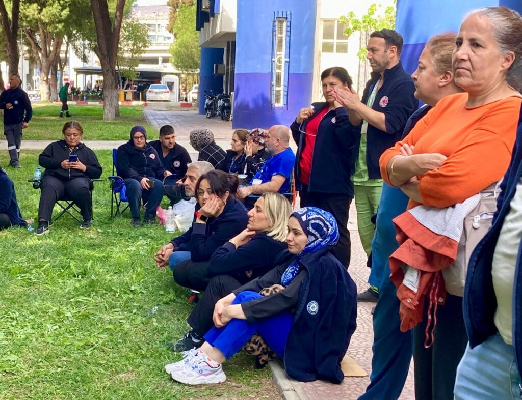Ege Üniversitesi çalışanları bağ bulundukları Türkiye Sağlık ve Sosyal Hizmet İşçileri Sendikası İzmir Şubesi öncülüğünde hastane bahçesin eylemlerini sürdürürken hastaneye tedavi için gelen hasta yakınları tarafından da alkışlarla desteklendi.