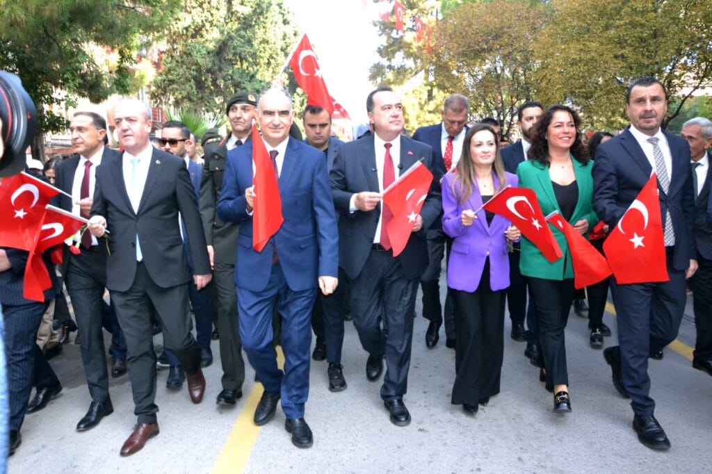 Cumhuriyetin kurucusu Gazi Mustafa Kemal Atatürk’ün Manisa’yı teşriflerinin 100. yıl dönümünü kutlandı. İlk olarak Manisa Tren Garında temsili karşılama töreni düzenlendi. Törene Manisa Valisi Vahdettin Özkan, CHP Manisa Milletvekilleri Ahmet Vehbi Bakırlıoğlu, Bekir Başevirgen, Manisa Büyükşehir Belediye Başkanı Besim Dutlulu, Manisa Cumhuriyet Başsavcısı Kurtca Eker, Manisa Barosu Başkanı Sevgi Yeşil Başak, Manisa protokolü, sivil toplum kuruluşları, öğrenciler katıldı. Manisa Garına gelen trenden inen Atatürk portresi taşıyan öğrenciler Manisa Valisi Vahdettin Özkan’a Türk bayrağını takdim etti. Halk oyunları ekibi bir gösteri gerçekleştirdi. Manisa Lisesi bando takımı eşliğinde protokol üyeleri Cumhuriyet Meydanına kadar kortej yürüyüşü gerçekleştirildi. Gazi İlkokulu ile İsmet İnönü Mesleki ve Teknik Anadolu Lisesi öğrencileri ellerindeki Türk bayraklarıyla yürüyüşe destek verdi. Anıta çelenk sunuldu. Manisa Büyükşehir Belediye Başkanı Besim Dutlulu burada bir konuşma yaptı.
