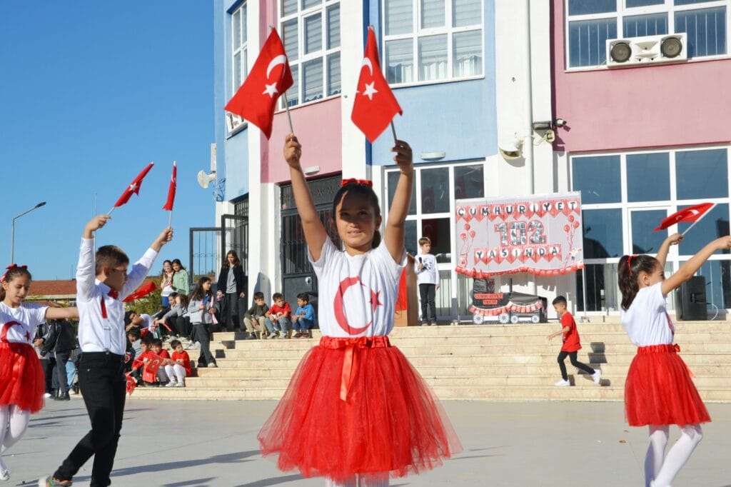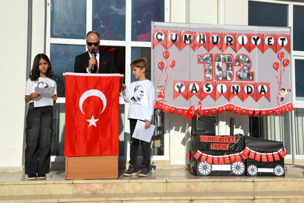 Etkinlik, saygı duruşu ve İstiklal Marşı ile başladı. Okul Müdürü Barış Karataş, Cumhuriyet’in 102. yılını kutlamanın büyük bir gurur kaynağı olduğunu belirterek, bu günün Türk milletinin tarihinde çok önemli bir yer tuttuğunu vurguladı. Öğrenciler ise kırmızı-beyaz kıyafetleriyle, ellerinde Türk bayraklarıyla çok güzel gösteriler sundular. Bu anlamlı kutlama, Cumhuriyet’in gücünü ve Türk milletinin birliğini bir kez daha gözler önüne serdi.