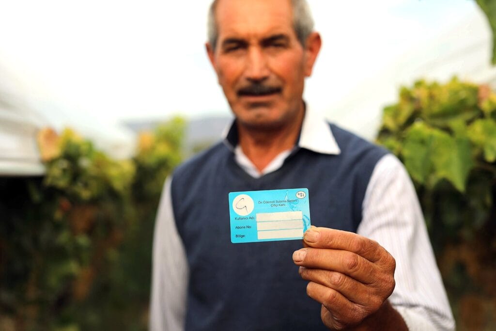 “Ön Ödemeli Elektronik Sayaç Sistemi” olan sulamalarda üretici elindeki karta önceden birliklerden ya da belirlenen noktalardan yükleme yaptırıyor. Ardından da o kartı sayaca okutarak, arazisini sulayabiliyor. Sulama maliyetlerinin düşürülmesi ve su verimliliğinin artırılması planlanan proje sayesinde su tüketiminde ortalama % 50 su tasarrufu hedefleniyor.