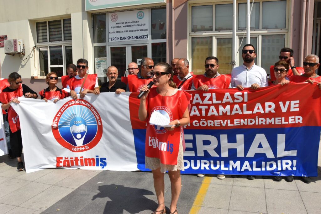 Eğitim-İş Manisa Şubesi, Milli Eğitim Bakanlığı’nın öğretmenlere yönelik norm fazlası atamaları ve ilçe grubu uygulamasını protesto etti. Basın açıklamasında, hukuksuz atamaların aile bütünlüğünü bozduğu ve öğretmenleri mağdur ettiği vurgulandı.