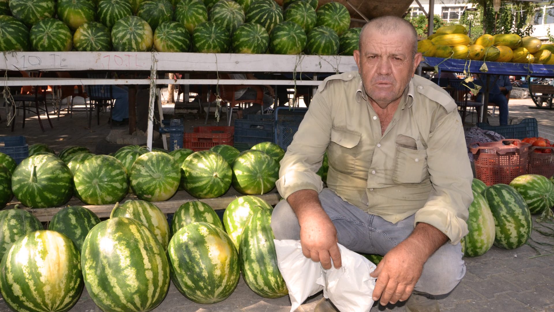 Karpuz üreticisi İrfan Eken, “Bu yıl karpuz ekimi çok fazla. Ekim çok olduğu için fiyatlar çok düştü. Bir de fideler çok pahalı. Fidenin bir tanesi 33 lira. Biz şimdi karpuzu 30 liraya satıyoruz. Bu karpuz 12-13 geliyor ortalama para kazanmıyoruz. Su parası, gübre parası, tarla icarı, şuanda çiftçi battı. Gerçekten battı. Darı ekiliyor darı para yapmıyor. Darı para yapmayınca millet döndü karpuza, kavuna. Ne ekecek başka? Darı ekmesi için su olması lazım, su yok. 20 gün su akıyor, 20 gün sonra su kesiliyor. Böyle olunca darı ekilmiyor. Hadi bunu iyi kötü sondajdan suluyoruz. Buğday desen zaten hiç para yapmıyor. Böyle olunca üretici para eder diye kavun karpuz ekti. O da hiç para yapmadı” dedi.