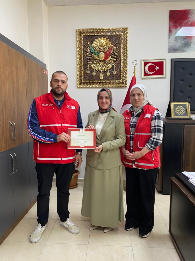 Ziyarette Selim Gün, okul yönetimi ve öğrencilerle bir araya gelerek gösterdikleri örnek davranıştan dolayı teşekkür belgeleri takdim etti. Kızılay, okul müdürü Şenay Gün Bahar’a, öğretmenleri temsilen Arapça öğretmeni Mahmut Hoca’ya ve kermeste en fazla satış ve bağış gerçekleştiren 9/A ve 9/C sınıflarına teşekkür belgeleri sundu.