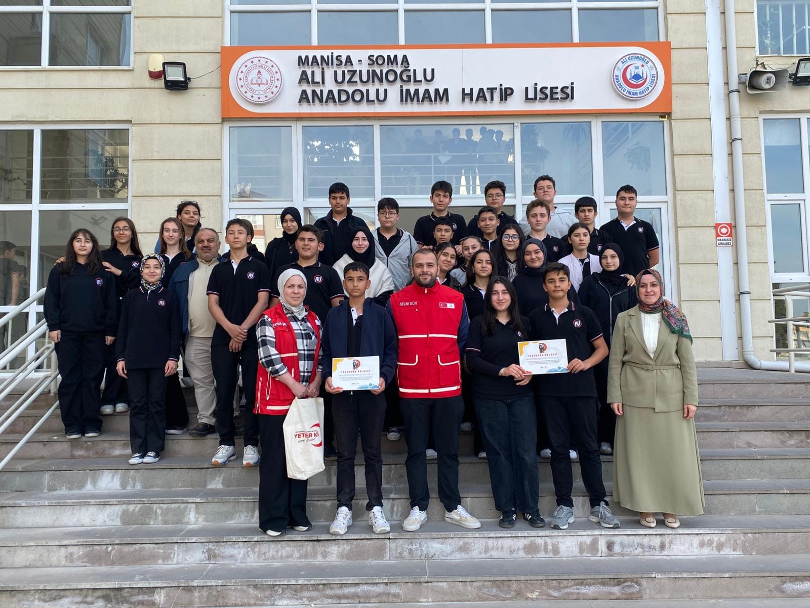 Soma Ali Uzunoğlu Fen ve Sosyal Bilimler Proje Anadolu İmam Hatip Lisesi’nde öğrencilerin Gazze’deki mazlumlara destek olmak amacıyla düzenlediği yardım kermesinde toplanan 105 bin TL, Türk Kızılayı aracılığıyla Gazze’ye ulaştırılması için teslim edildi.