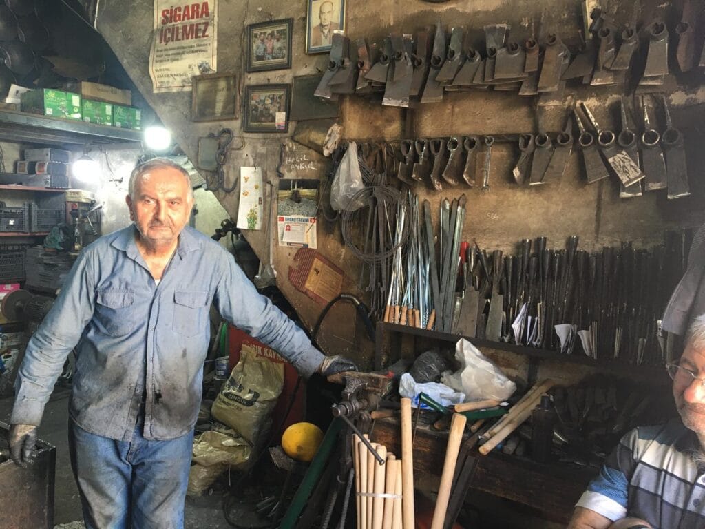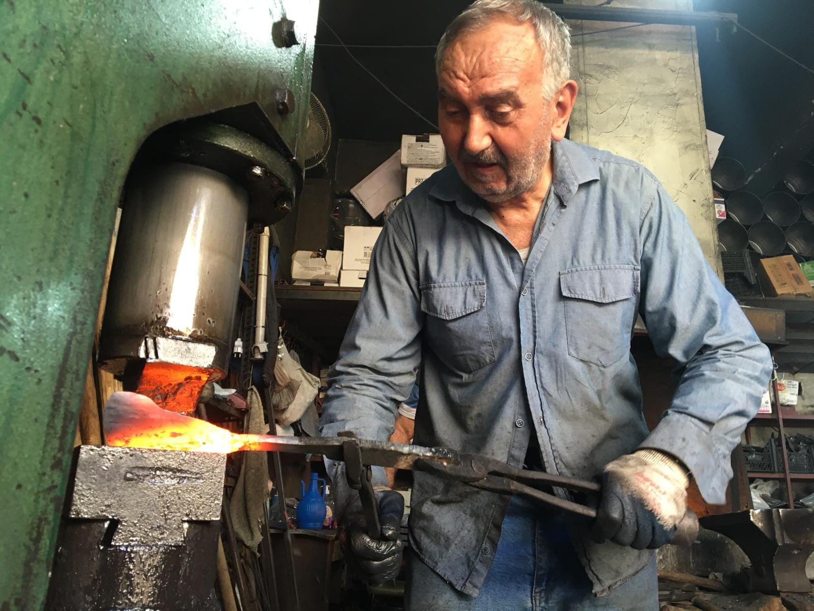 Manisa’nın “yanık ülkesi” ve aynı zamanda şirin bir ilçesi olan Kula’da tarihi demirciler arastasında dördüncü kuşak sıcak demir ustaları, Mustafa Şahin (66) ve Ali Şahin (70)kardeşler tarihi demirci atölyelerinde mesleklerini devam ettirmek için çalışıyorlar. Sıcak demir ustası Ali Şahin oğullarına da mesleğini öğretmiş ve beşinci kuşak olarak beraber çalışıyorlar.
