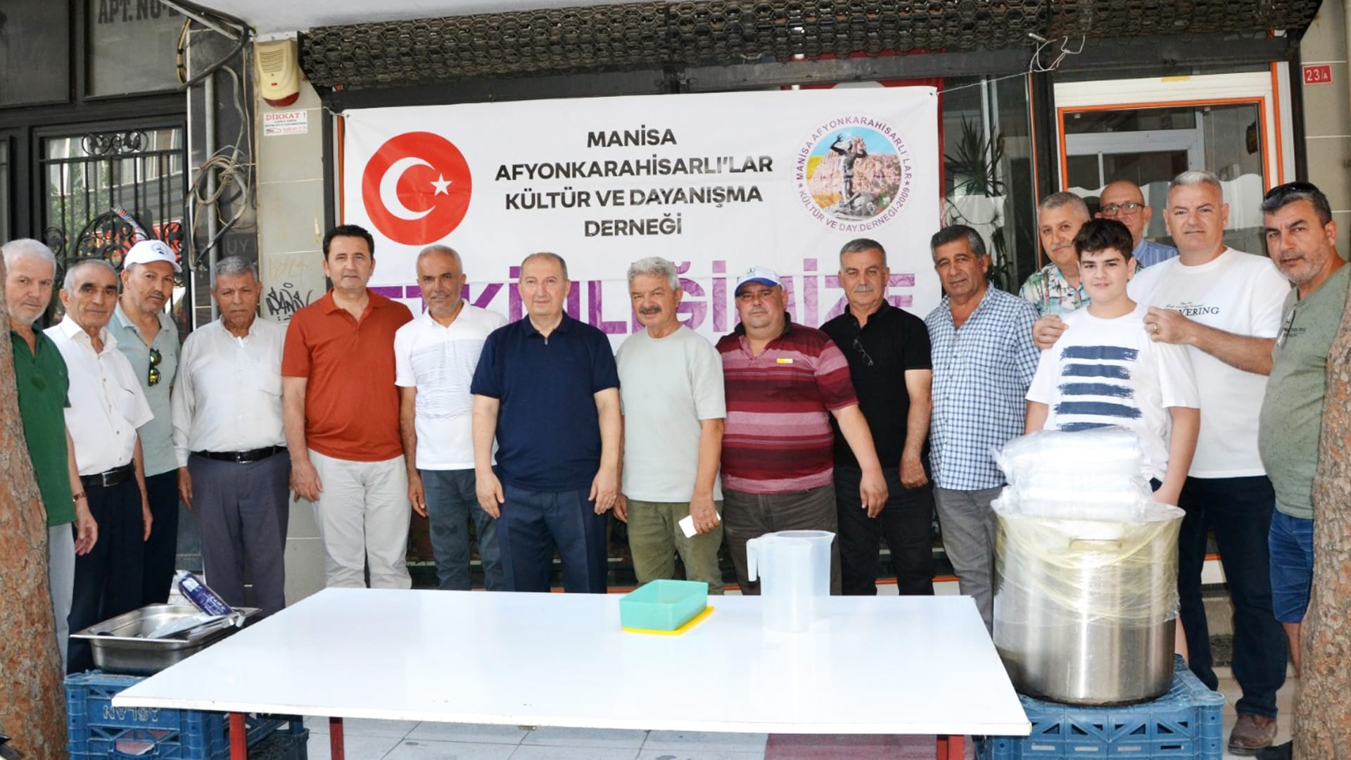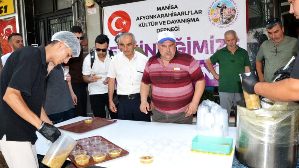 Manisa’da Afyonkarahisarlılar Kültür ve Dayanışma Derneği Başkanı Dr. Ragıp Güneş aşure hayrına katılan herkese teşekkür etti. Güneş, “Ömer Lütfi Soysal abimizin ölüm yıldönümüdür. Lütfü abi, Ali Ünlü abimiz, Ali Çelik kardeşim, Yusuf Burkan abimiz ve vefat eden ismini sayamadığımız tüm rahmetli hemşehrilerimiz için aşure hayrı gerçekleştirdik. Destek olan, katkı sunan, katılan herkese teşekkür ediyorum” dedi.
