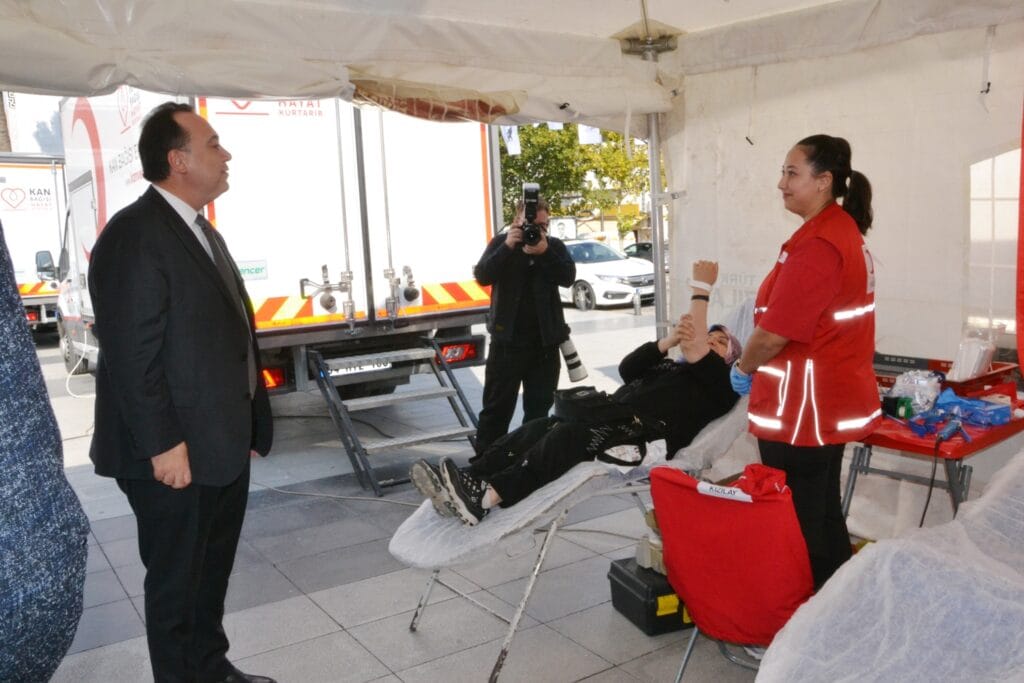 Manisa Valisi Vahdettin Özkan, bu anlamlı kampanyayı gerçekleştiren Manisa Büyükşehir Belediyesi ile Türk Kızılay’ı Ege Bölge Kan Merkezi’ne teşekkür etti. Vali Özkan, vatandaşları kan bağışında bulunmaya davet etti. Vali Özkan, “İnsanlarımızın yaşam kalitesinin en önemli bileşenlerinden birisi sağlıklı bir hayattır. Sağlıklı bir toplum inşa etmektir. Bununla ilgili hem evrensel standartlar, hem insani beklentiler Hem de insanlarımızın talebi doğrultusunda devletimizin, hükümetimizin ortaya koymuş olduğu sağlıkla ilgili, sağlıklı bir toplum inşa, sürdürülebilir bir sağlık sistemini inşa etme ile ilgili bir mekanizmanın oluşundan yüksek derecede bir mutluluk duyuyoruz. Kızılay’ımız zaten hem insanlarımızın hep hissiyatına tercüman olarak bu çalışmaları yürütüyor geleneksel olarak. Hem sivil yönetim ağır basan, hem kamu kurumlarıyla ağırlıklı bir ağı olan, hem memleketimizin dört bir yanında bu kan bağışları başta olmak üzere bu anlamda insani yardım harekatının da öncü kuruluşudur. Evet. Bu yönlü de Kızılay’ımıza teşekkür ederiz. Kızılay’ımız bütün kamu kurum ve kuruluşlarımızla irtibatlı ve koordineli bir şekilde mahalli idareler, belediyeler başta olmak üzere koordineli bir şekilde bu hizmetleri sunarak iyileştiriyor. Manisa’da da bir kan bağışı kampanyasının olmuş olmasından büyük bir mutluluk duyuyoruz. Bütün vatandaşlarımızın bu kan bağışı yapmak üzere çağrıda bizde bulunuyoruz. Kızılay’ın bu hayırlı işine birer nefer olarak müdahil olmak lazım. Diğer insanların sağlığını düşünerek bir yakınımızın gerçekten acil ihtiyacı olabilir. İnsanlarımızın ihtiyacı olabilir. Böyle bir anlamlı hizmete katkı sunmanın hem manevi zevkini de tatmak lazım diye düşünüyoruz. Kızılay’ımıza, Manisa Büyükşehir Belediyemize teşekkür ederiz. Bu kampanyaya destek verdikleri için Tüm meslek kuruluşları, sivil toplum kuruluşları, tek tek insanların bu sağlıkla ilgili gerekli ve hayırlı işe katkı ve katılım sağlamasının kıymetli olduğunu ifade ederek herkesi davet ediyorum” dedi.