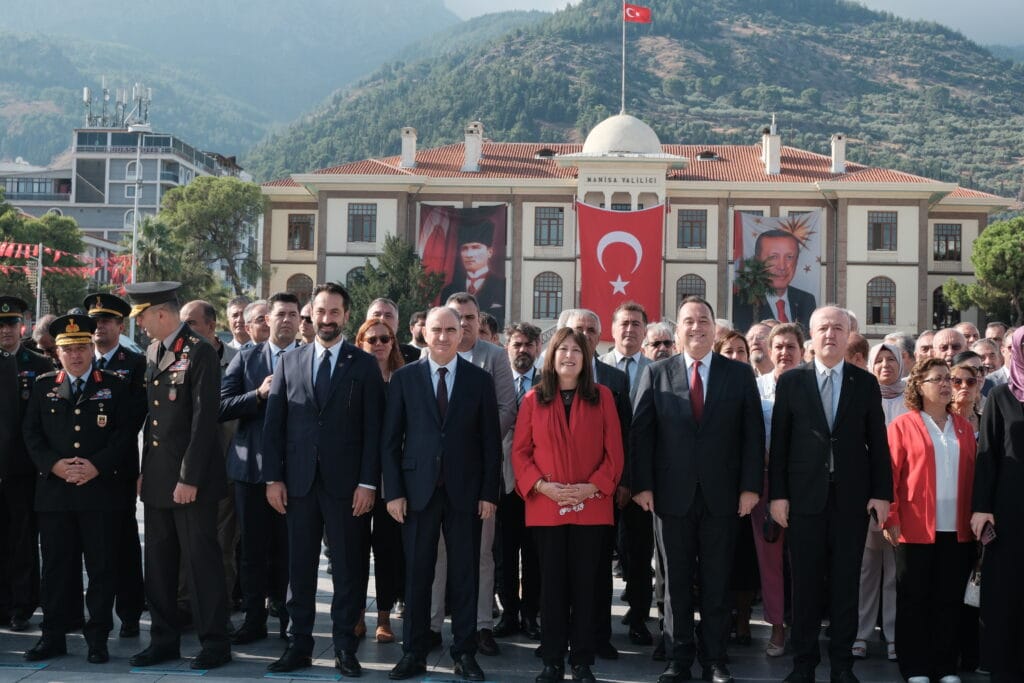 8 Eylül Manisa’nın düşman işgalinden kurtuluşunun 103. Yıldönümü törenle kutlandı. Manisa’da Şehzadeler ilçesindeki Cumhuriyet Meydanı’nda bulunan Atatürk ve Milli Egemenlik Anıtı önünde tören düzenlendi. Törene Manisa Valisi Vahdettin Özkan, AK Parti MKYK Üyesi ve Manisa Milletvekili Mücahit Arınç, İyi Parti Manisa Milletvekili Şenol Sunat, Manisa Büyükşehir Belediye Başkanı Besim Dutlulu, Kara Kuvvetleri Komutanlığı Eğitim ve Doktrin Komutanlığı Eğitim Tümen Komutanı Tümgeneral Emre Tayanç, Manisa İl Emniyet Müdürü Fahri Aktaş, İl Jandarma Komutanı Tuğgeneral İlhan Şen, Manisa Celal Bayar Üniversitesi Rektörü Prof. Dr. Rana Kibar, Manisa Cumhuriyet Başsavcısı Kurtca Eker, Yunusemre Belediye Başkanı Semih Balaban, Şehzadeler Belediye Başkanı Gülşah Durbay, gaziler, siyasi parti il temsilcileri, Manisa protokolü katıldı.