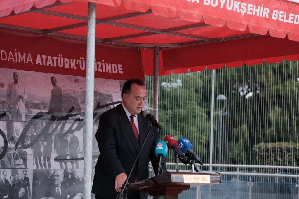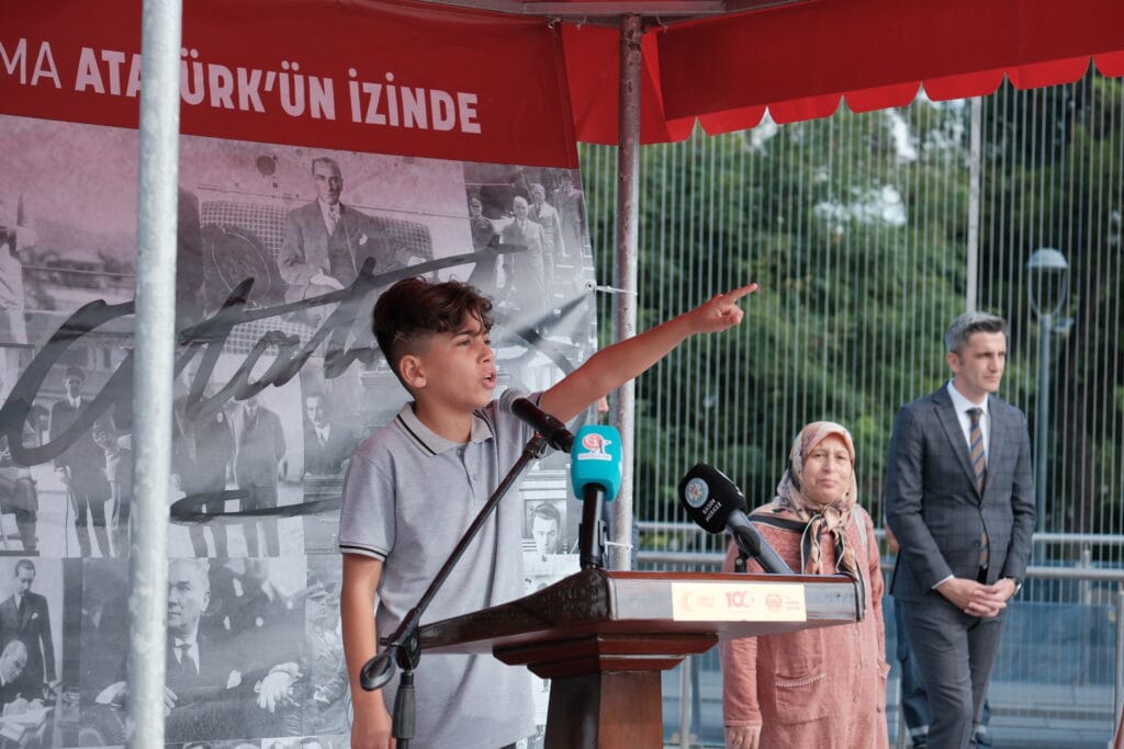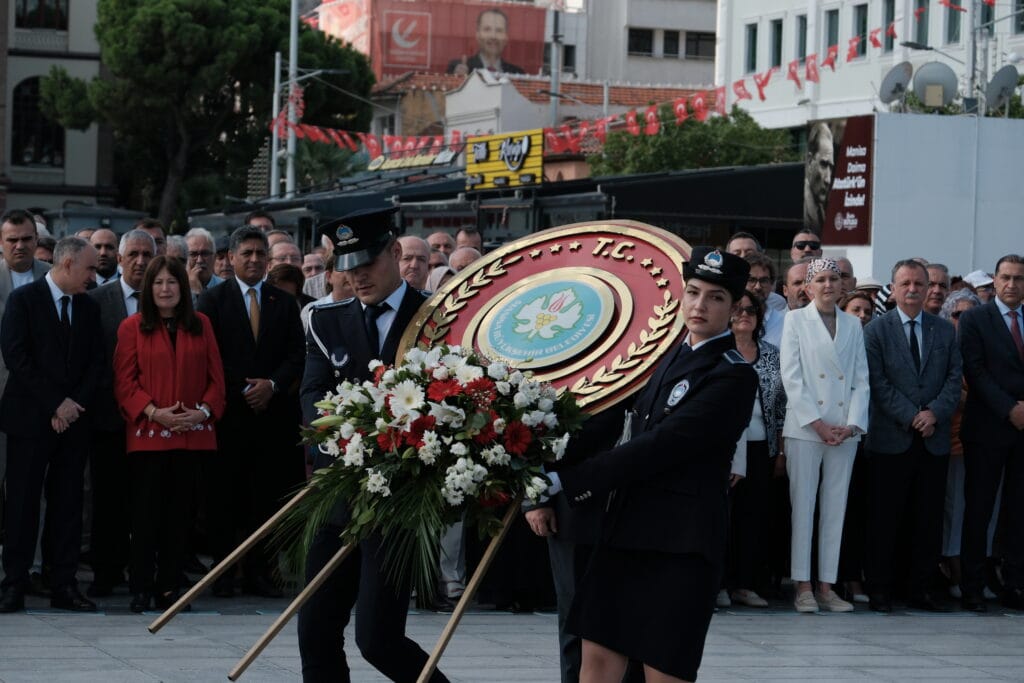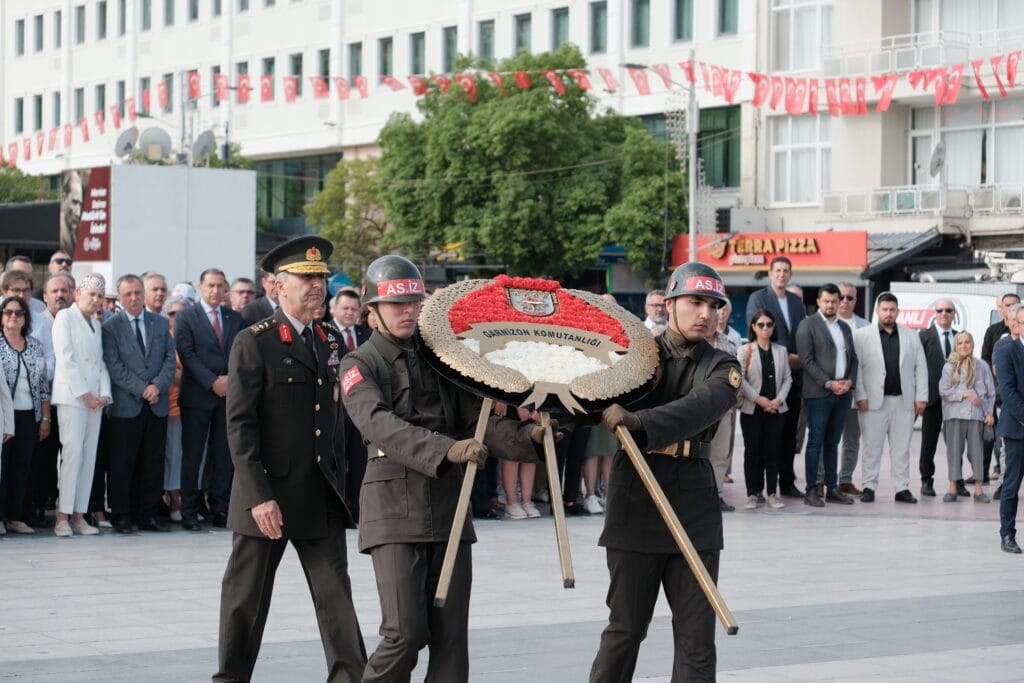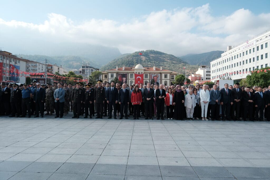 Vali Özkan, Tümgeneral Emre Tayanç, Başkan Dutlulu anıta çelenk sundu. Dr. Ömer Faruk Meriç Ortaokulu öğrencileri şiirler okudu.