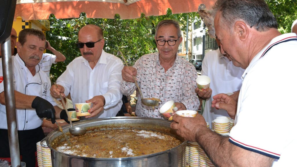 Manisa Esnaf ve Sanatkarlar Odası (MESO) Muharrem ayı kapsamında geleneksel aşure günlerini sürdürüyor. MESO tarafından ikinci aşure etkinliği Karaköy Kırmızı Köprü önünde gerçekleştirdi. Aşure hayrına Manisa Esnaf ve Sanatkarlar Odaları Birliği (MESOB) Başkanı Hasan Geriter, Manisa Esnaf ve Sanatkarlar Odası Başkanı Bahattin Akyüz, Karaköyspor Başkanı Osman Yıldırım ve oda üyeleri katıldı. Okunan duanın ardından Başkan Geriter ve Başkan Akyüz vatandaşlara aşure ikram etti. 500 kişilik aşure dağıtıldı.