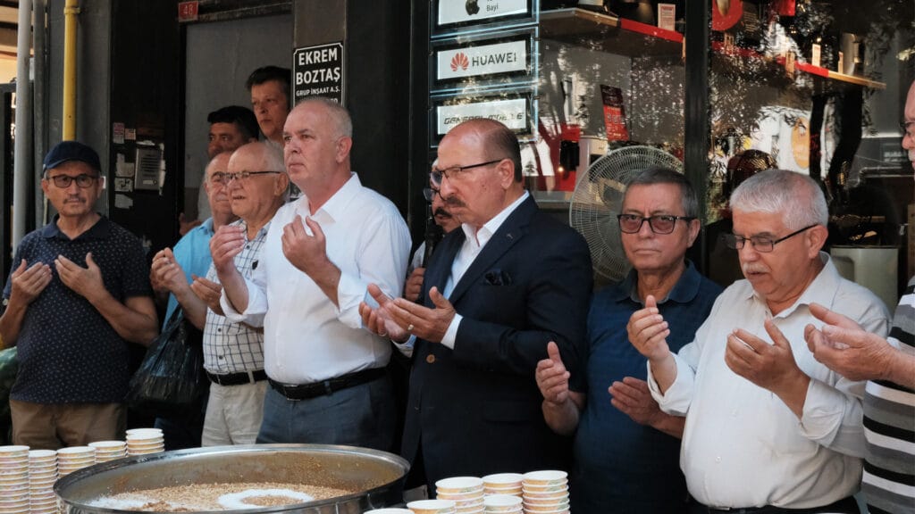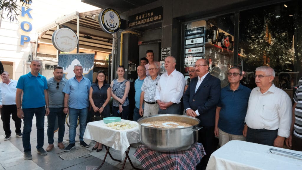 Manisa Esnaf ve Sanatkarlar Odası Başkanı Bahattin Akyüz, aşure hayrına katılan herkese teşekkür etti. Akyüz, Esnaf odası olarak yıllardır geleneksel hale getirdiğimiz aşure hayırlarımızı bu yıl da sürdürüyoruz. Bu geleneği sürdürmekten dolayı mutluyuz. Şehrimizin çeşitli noktalarında, 5 ayrı bölgede aşure dağıtımı yapacağız. Bugün odamızın önünde bin kişilik aşuremizi ikram ettik. Karaköy Kırmızı Köprü’de, Perşembe günü Tapu Müdürlüğü önü, ardından Muradiye ve Çobanisa’da 500’er kişilik dağıtımlar gerçekleştireceğiz” diye konuştu.