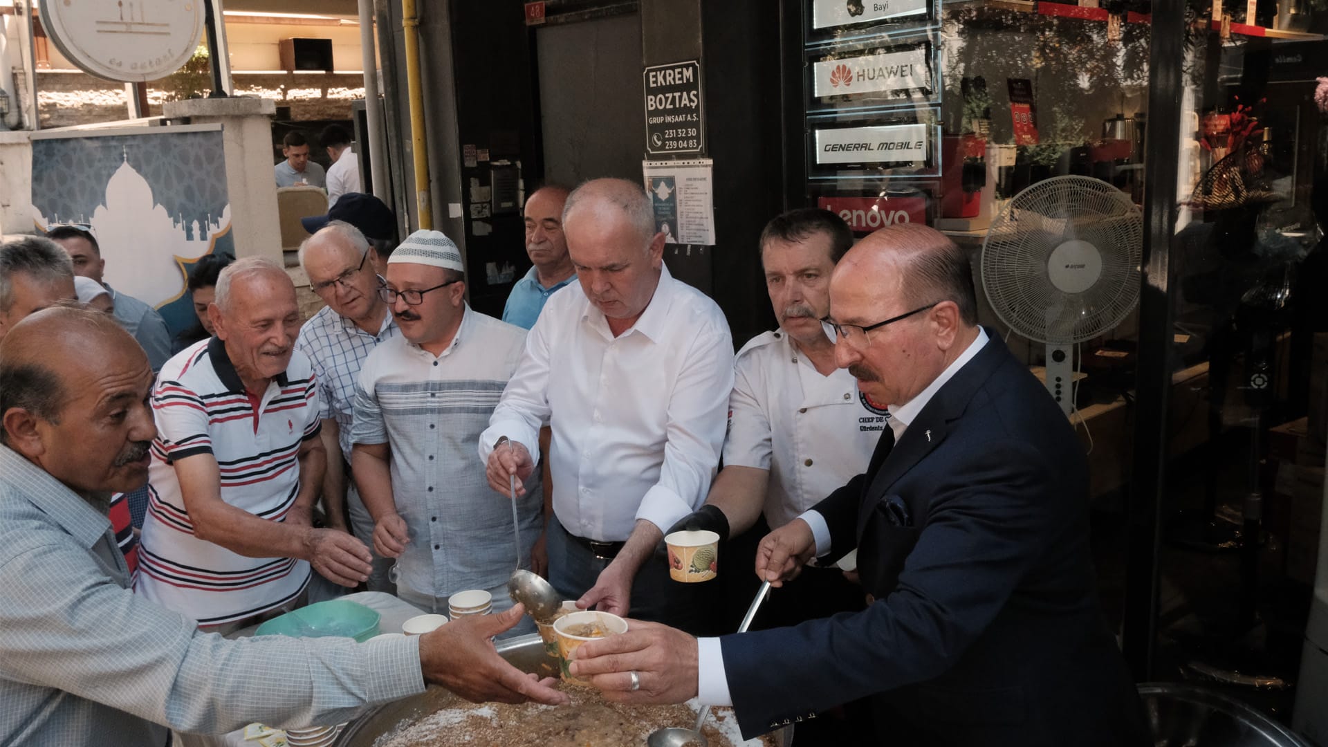 Aşure hayrına Manisa Esnaf ve Sanatkarlar Odaları Birliği Genel Sekreteri Bektaş, Manisa Esnaf ve Sanatkârlar Kooperatifi Başkanı Destan Bulgay, Mania Madeni Sanatkarlar Odası Başkanı Halil Kırlı, Manisa Ayakkabıcılar Odası Başkanı Ahmet Akçın, 155 Nolu Manisa Özel Halk Otobüsleri Motorlu Taşıyıcılar Kooperatifi Başkanı Fevzi Açıkel katıldı.