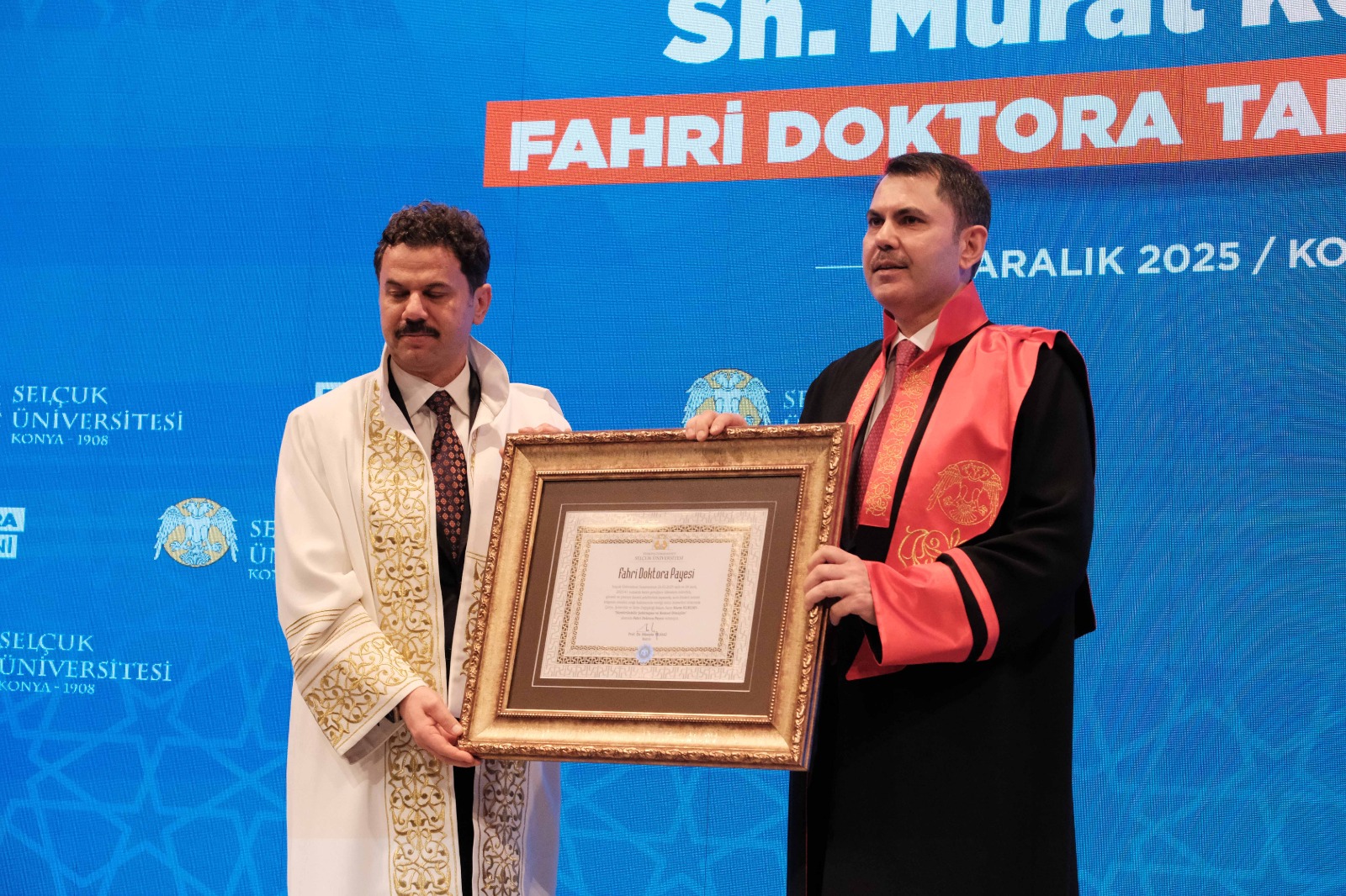 Selçuk Üniversitesi’nin kendisine takdim ettiği fahri doktora unvanını gururla taşıyacağını belirten Bakan Kurum, Konya’nın asırlardır devlet adamı ile alimin kesiştiği bir kültür merkezi olduğunu vurguladı: “Üniversite yıllarımda ve görevlerimde bu şehrin tecrübesi daima yol göstericim olmuştur. Bu fahri doktora unvanını her zaman gururla, onurla, şerefle taşıyacağım.”