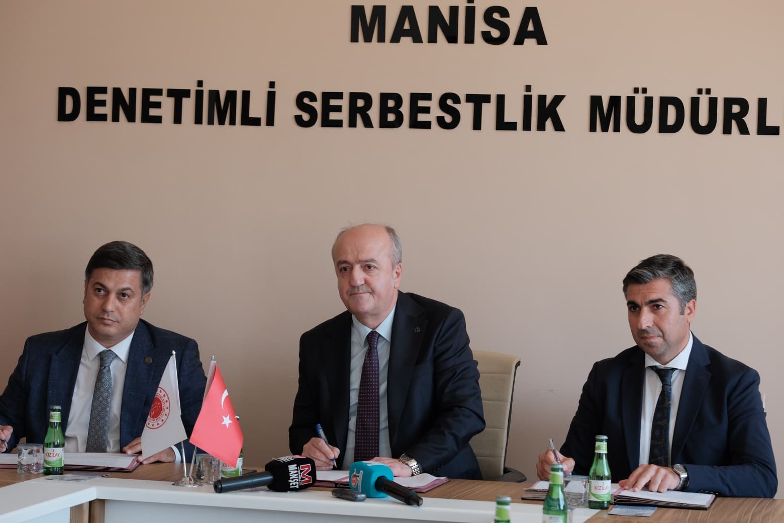 Manisa Cumhuriyet Başsavcısı Kurtca Eker, Manisa Gençlik ve Spor İl Müdürü Yunus Öztürk ile Manisa Denetimli Serbestlik Müdürü Cenk Arslan tarafından protokol imzalandı.